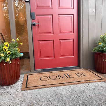 We provide homeowners with fresh flower pots and welcome mats. Home Sellers get to keep the mat and planted pots stay for 4 weeks or just after appraisal, whichever comes sooner.